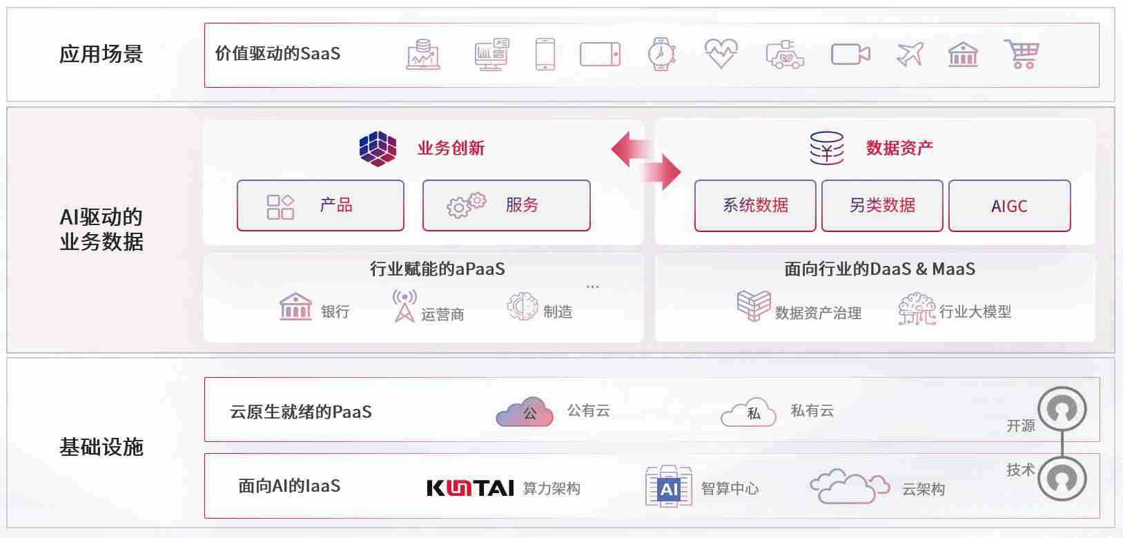 数字时代,,围绕企业数字化转型的关键要素,,,,PG国际数码开创性的提出数云融合战略和技术体系框架,,,着力在云原生、、数字原生、、、、AI原生和信创产业上架构产品和服务能力,,,,为处在不同数字化转型阶段的快消零售、、汽车、、金融、、、、医疗、、、、政企、、、、教育、、、运营商等行业客户提供泛在的敏捷IT能力和融合的数据驱动能力,,构建跨界融合创新的数字业务场景和新业务模式,,,,助力企业级客户建立面向未来的核心能力和竞争优势,,,,全面推动社会的数字化、、、智能化转型升级。。。。